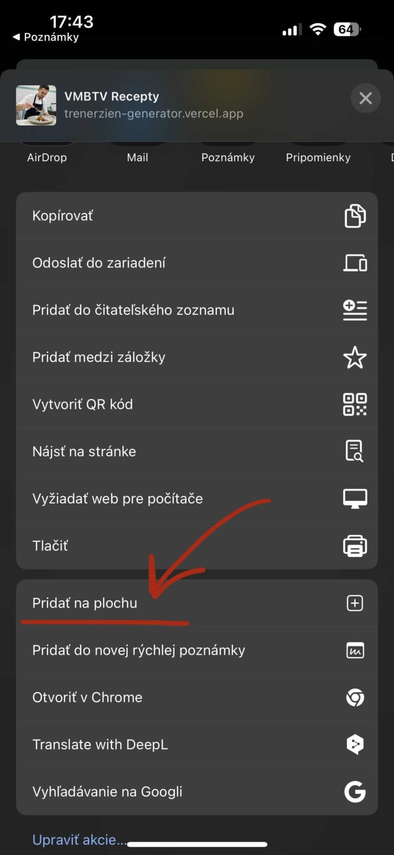3. krok - po kliknutí na ikonku "zieľať " sa ti zobrazí menu s možnosťami. Ty klikni na "pridať na plochu" (viď obrázok)