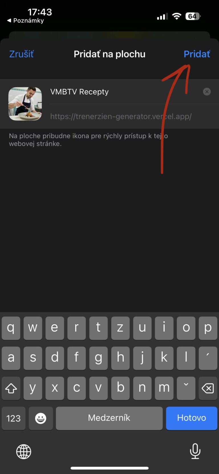 4. krok - Následne klikni na "pridať " (viď obrázok)