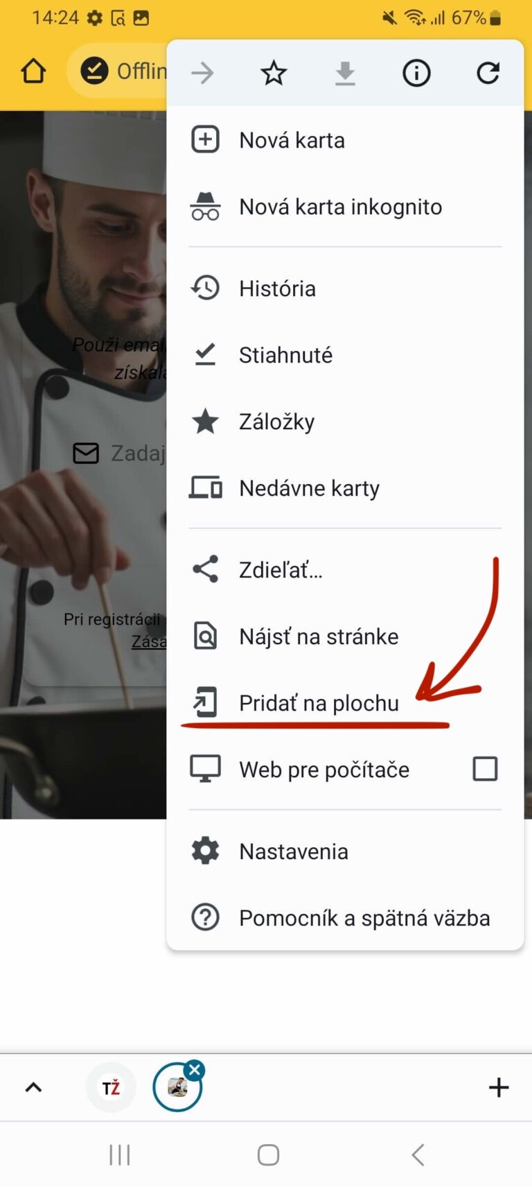 3. krok - po kliknutí na "tri bodky" sa zobrazí menu s možnosťami. Ty klikni na "pridať na plochu" (viď obrázok)